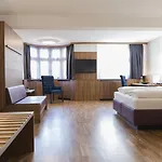 Quarto de bom tamanho e bem equipado com controle de temperatura, cofre pessoal e TV com vários canais. Fácil acesso ao aeroporto de Innsbruck, num raio de 10 km.